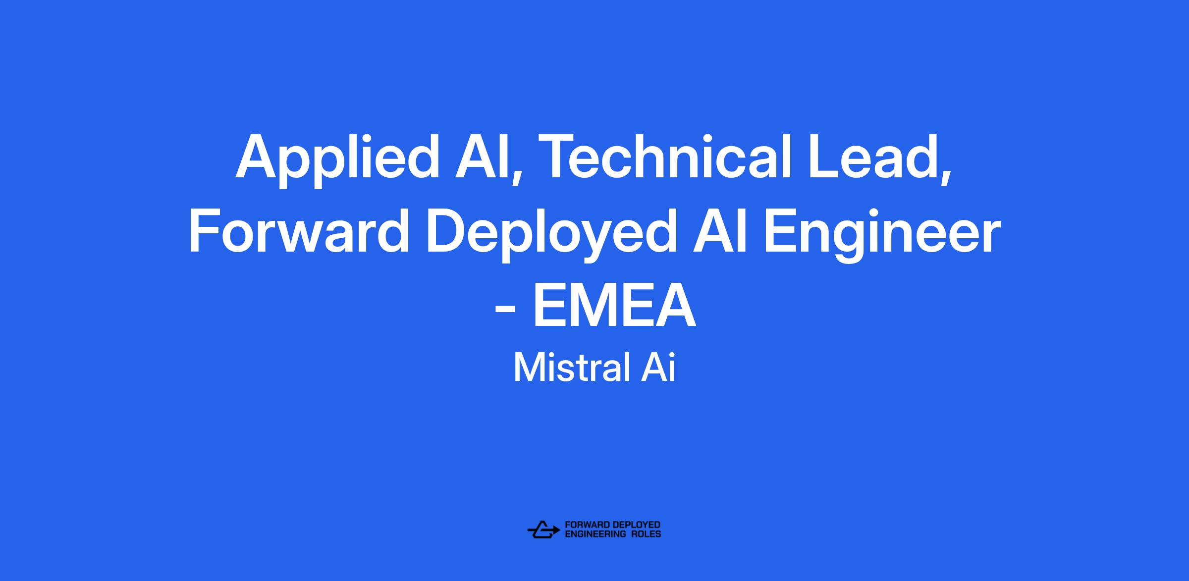 Mistral AI is seeking a Technical Lead, Applied AI to drive the technical strategy, execution, and delivery of complex AI solutions for our enterprise customers. In this role, you will lead a project teams of Applied AI Engineers, ensuring the successful deployment of Mistral AI products and the development of high-impact, scalable AI use cases.