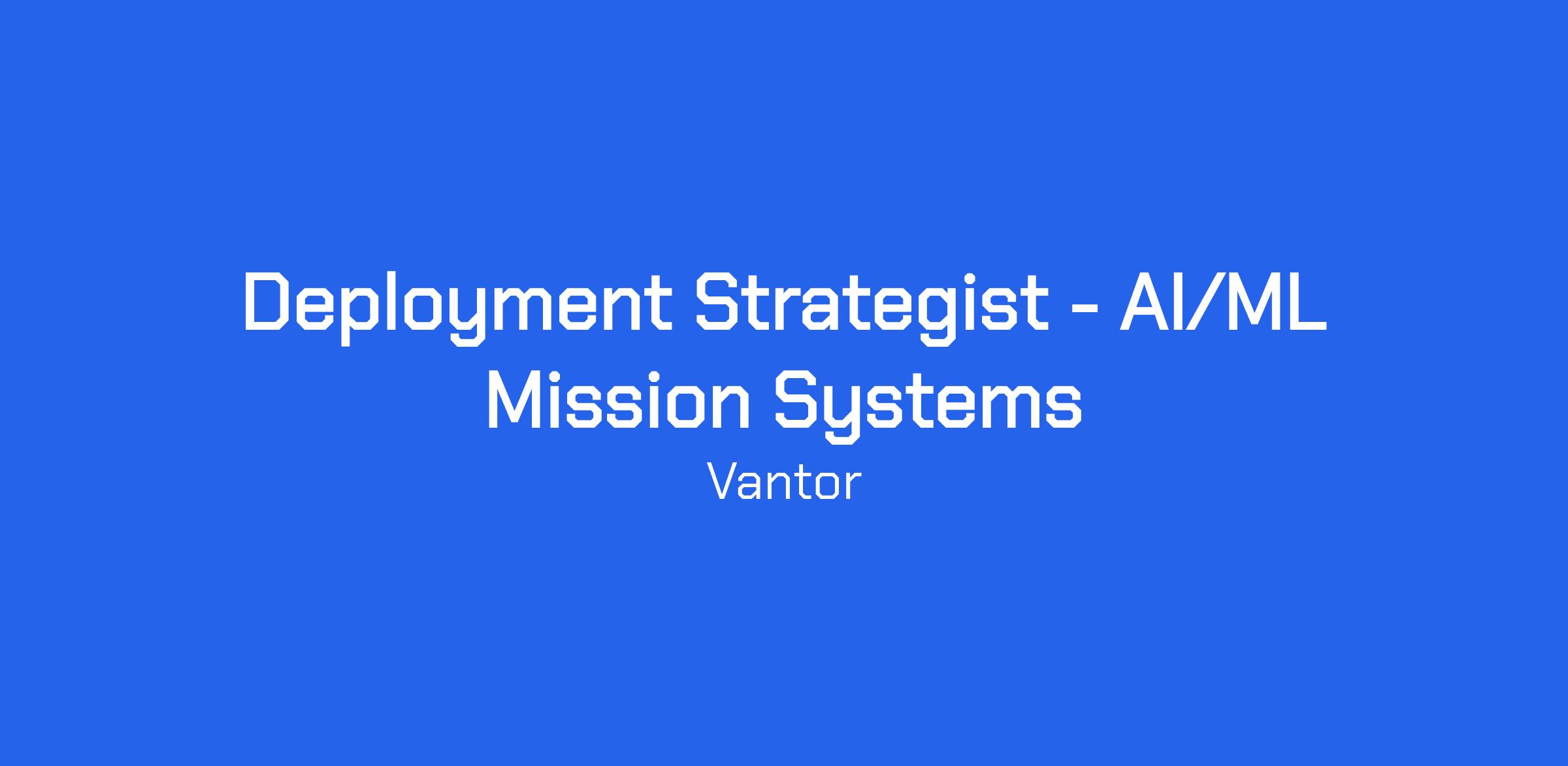 Vantor is hiring a Deployment Strategist for our AI/ML Mission Solutions portfolio to serve as a forward-leaning solutions architect, bridging customer mission needs with cutting-edge technical capabilities. This role focuses on designing mission-fit solutions, mapping product capabilities to real-world use cases, and driving “the art of the possible” for defense and intelligence customers.