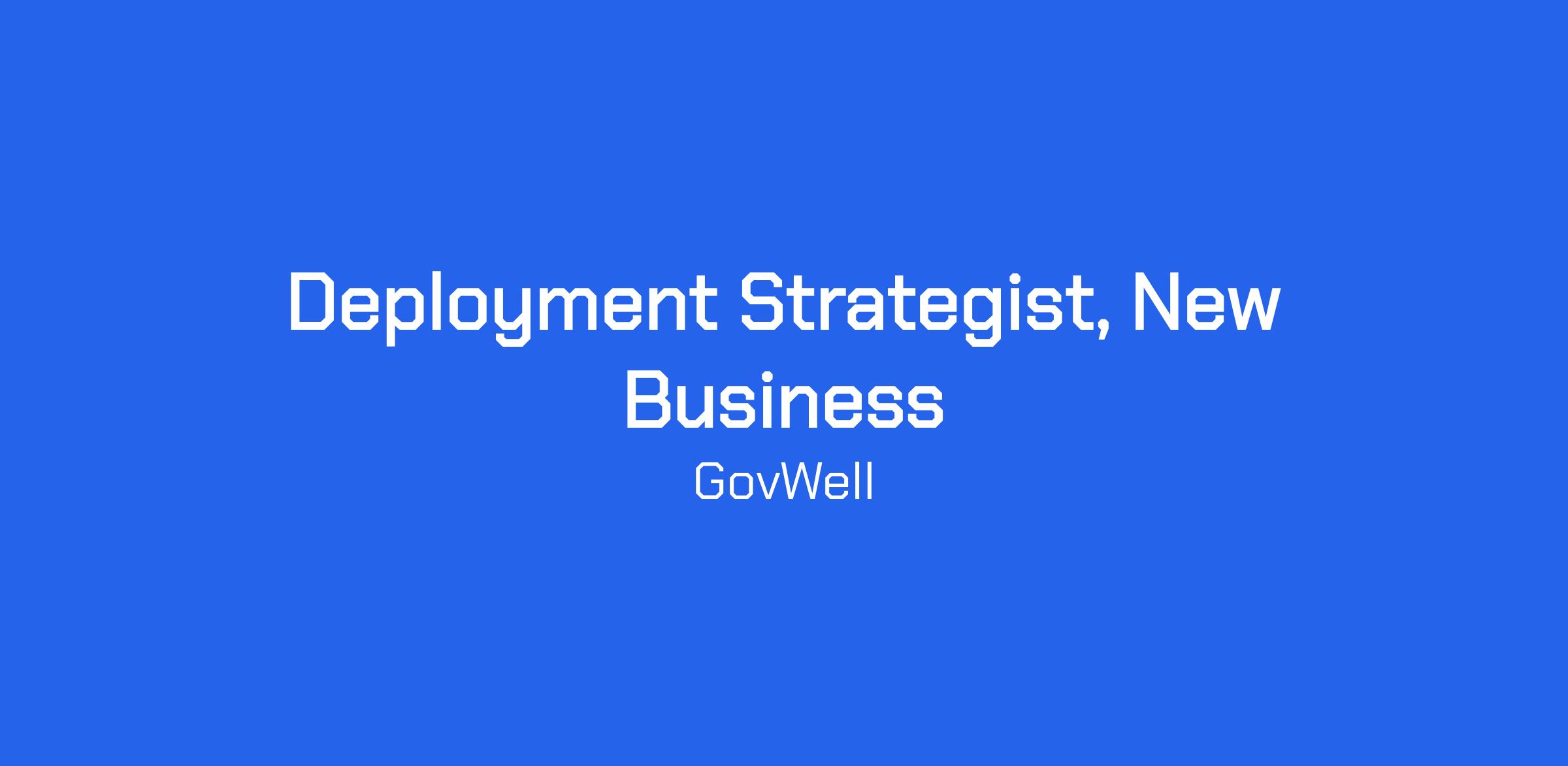 GovWell is hiring a Deployment Strategist, New Business to lead new customer launches and ensure long-term success across our municipal partners.