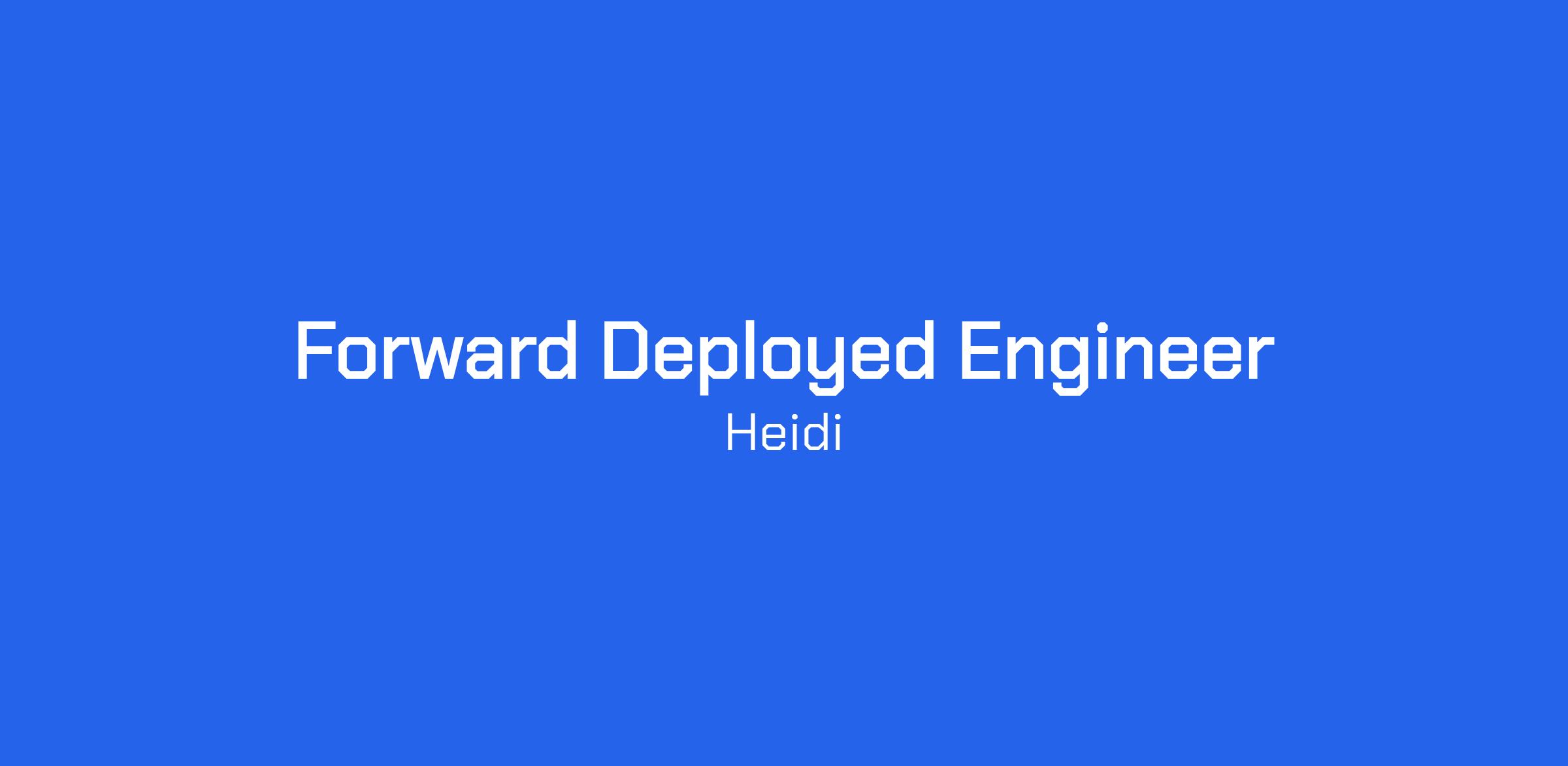 As a Forward Deployed Engineer, you'll be embedded with our most strategic customers — the person who makes Heidi actually work in the real world.