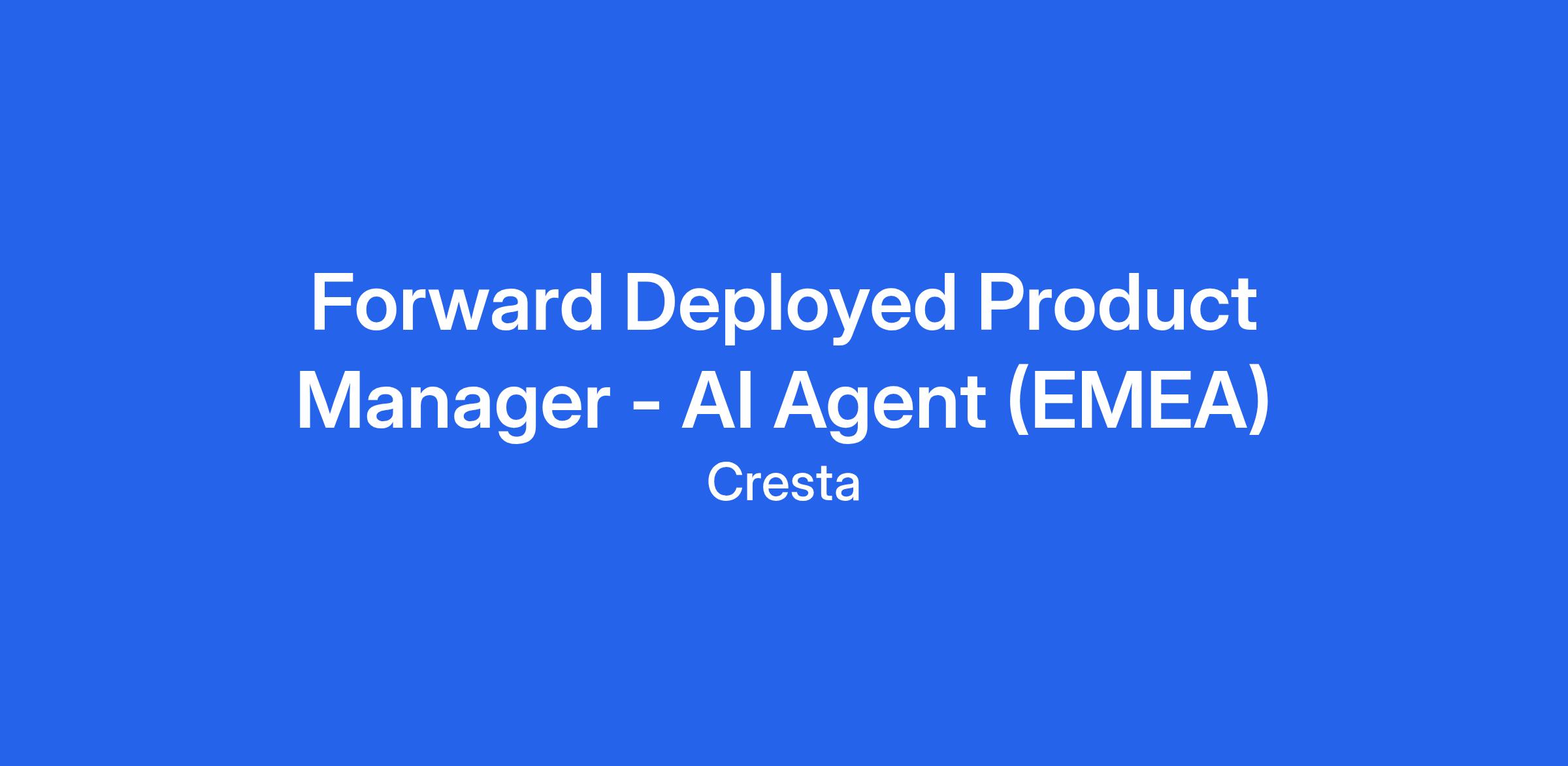 As our first EMEA Forward Deployed Product Manager, AI Agent, you will create, deploy and optimize AI Agents that transform our customers’ businesses and delight their customers. This highly cross-functional and customer-facing role blends product thinking, a nose for value, and project leadership with senior customer executives. At the end of the day, you own each AI Agent and the outcomes they drive for our customers, and you take that personally. You are a creative, pragmatic problem solver who thrives in fast-paced environments, rolls up your sleeves to build, and excels at turning ambiguity into execution.