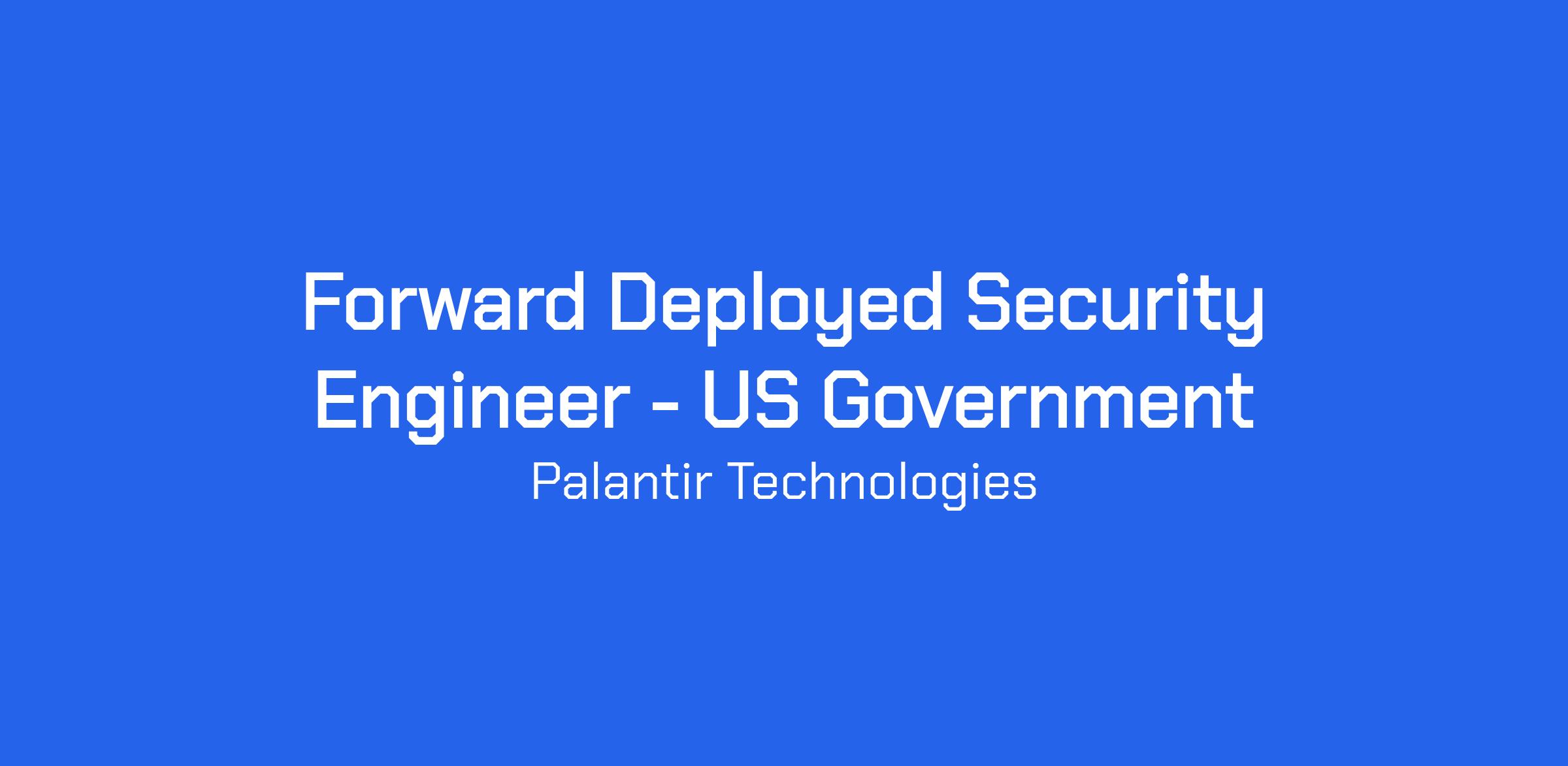 As a Forward Deployed Security Engineer, you support a variety of projects which draw from your wide spectrum of technical experience. You are resourceful, collaborative, and take initiative to improve our processes over time. Most importantly, you are passionate about taking on new challenges and finding innovative ways to support critical missions.
