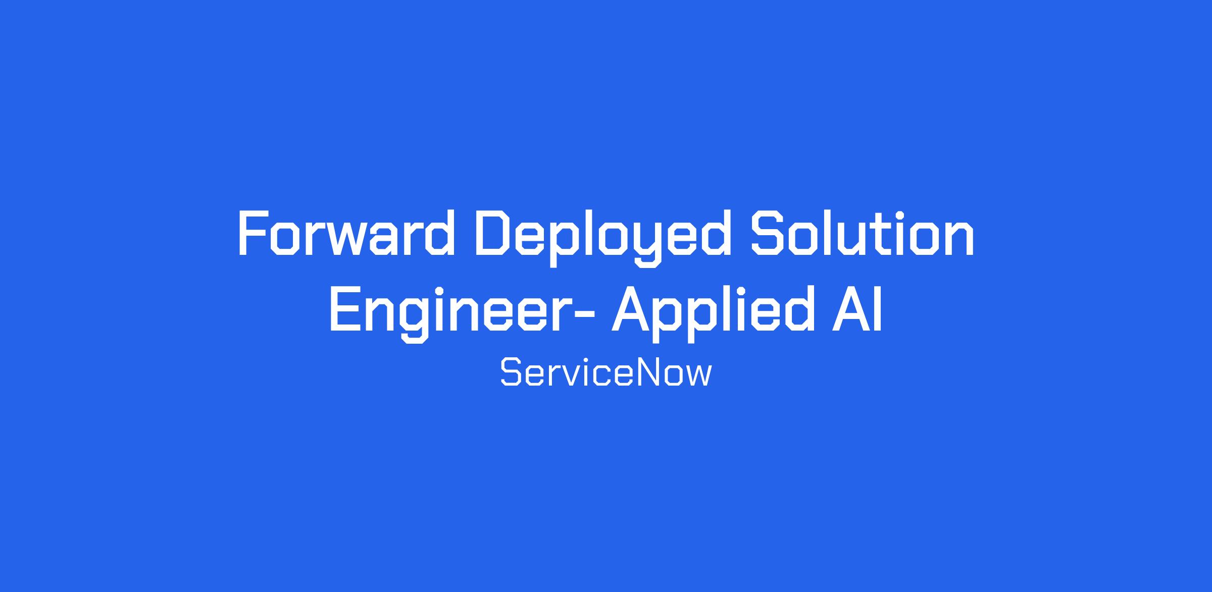 ServiceNow’s Applied AI Forward Deployed Engineering (FDE) team is where bold ideas meet transformative action. We partner with our most strategic customers to shape the future of enterprise AI. Together, we identify high-value opportunities, accelerate business outcomes, and build reusable AI-native solutions that advance the Now AI Platform.
