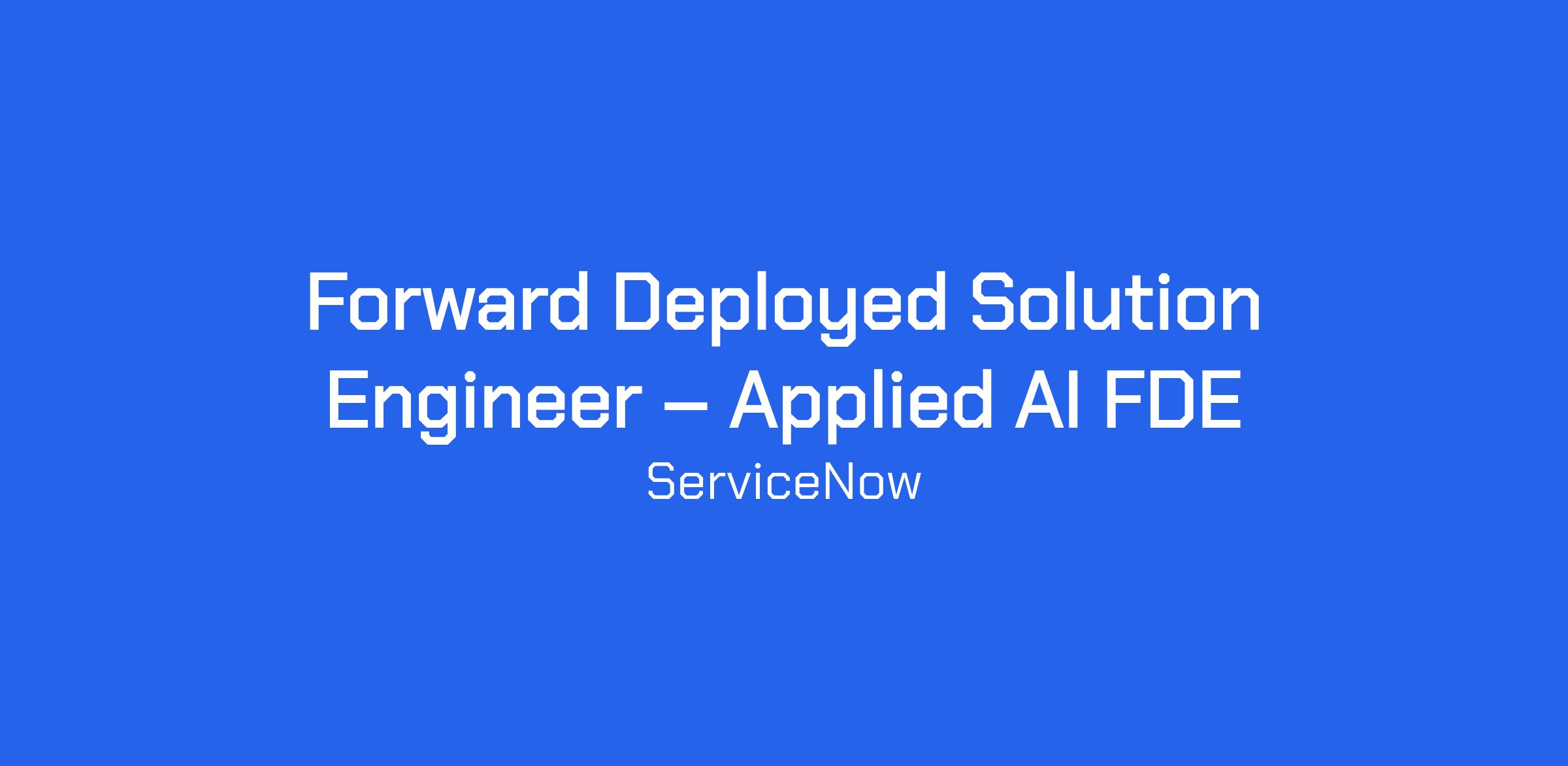 ServiceNow’s Applied AI Forward Deployed Engineering (FDE) team is where bold ideas meet transformative action. We partner with our most strategic customers to shape the future of enterprise AI. Together, we identify high-value opportunities, accelerate business outcomes, and build reusable AI-native solutions that advance the Now AI Platform.