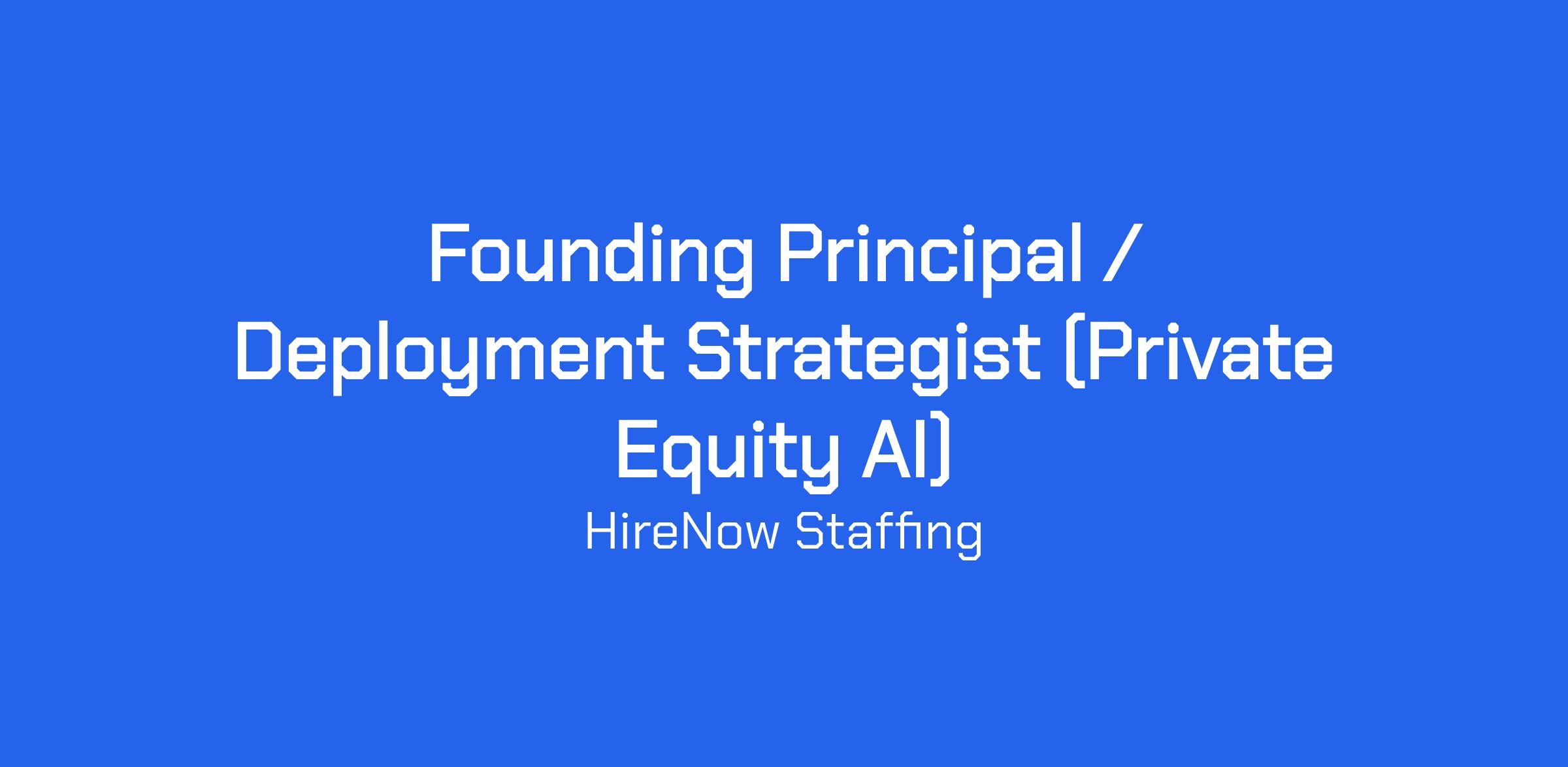 Founding Principal / Deployment Strategist (Private Equity AI)