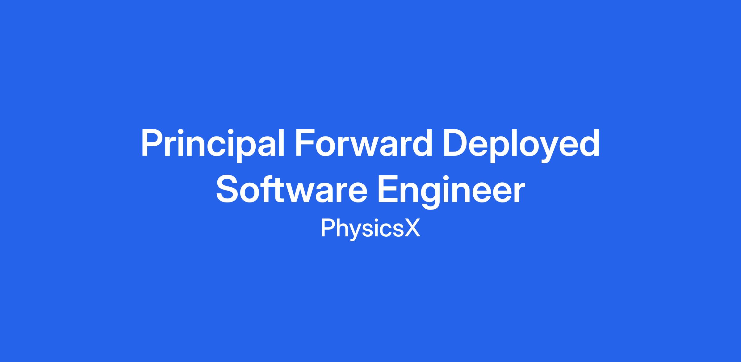 Your role, first and foremost, is to help our customers solve their most impactful problems. As Principal Forward Deployed Software Engineer, you’ll define how PhysicsX’s Forward deployed engineers deliver software that enables our customers to build better, faster, and cheaper across large-scale customer projects. You’ll set the standard for how software engineering is done across delivery and codify solutions developed with customers into our core product offering.