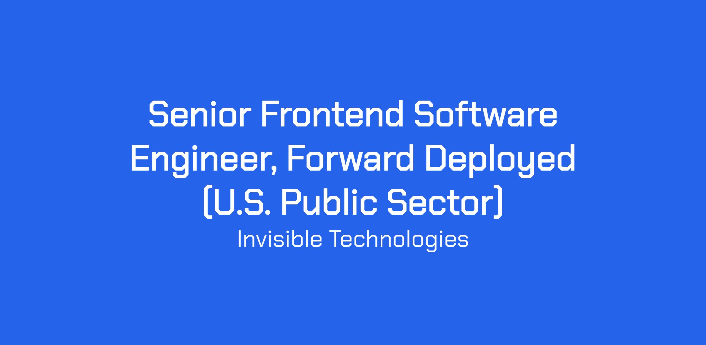 As a Senior Frontend Forward Deployed Engineer (FDE) for our U.S. Public Sector team, you will lead the strategy, architecture, and execution of high-impact systems that modernize and optimize our clients' most vital operations.