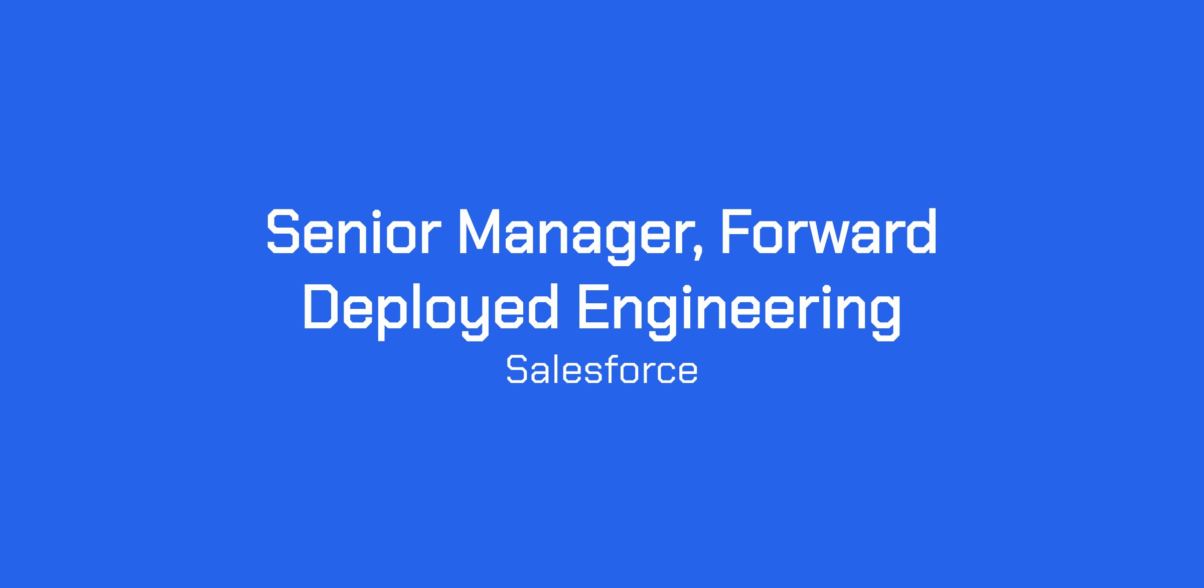 As a Senior Manager of Forward Deployed Engineers, you will lead high-performing teams delivering enterprise-scale Agentforce and AI transformations. You will combine people leadership, architectural governance, operational excellence, and strategic growth ownership.