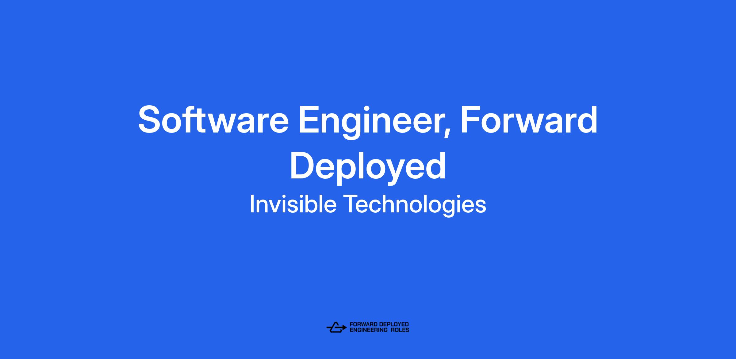 Invisible is a hybrid organization with offices and team members located around the world. While some roles may offer remote flexibility, most positions involve in-office collaboration and are tied to specific locations. Any location-based requirements or hybrid expectations will be communicated by our Talent Acquisition team during the recruiting process.