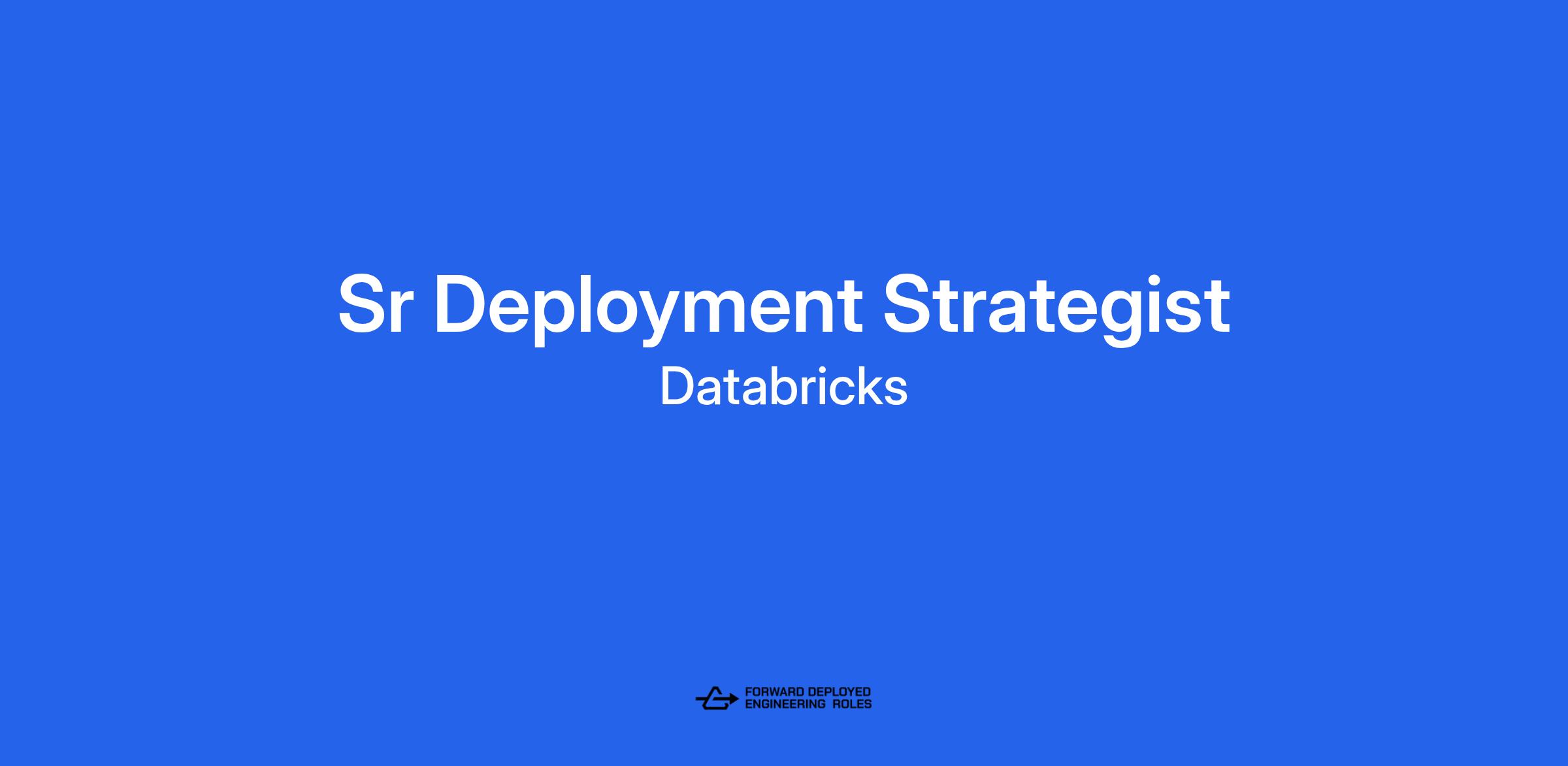 As a Sr Deployment Strategist (Sr DS), you are the critical bridge between a customer's multi-million dollar business problem and Databricks' technical solution. You are a "product manager for the field," owning the entire non-technical lifecycle of an FDE engagement.