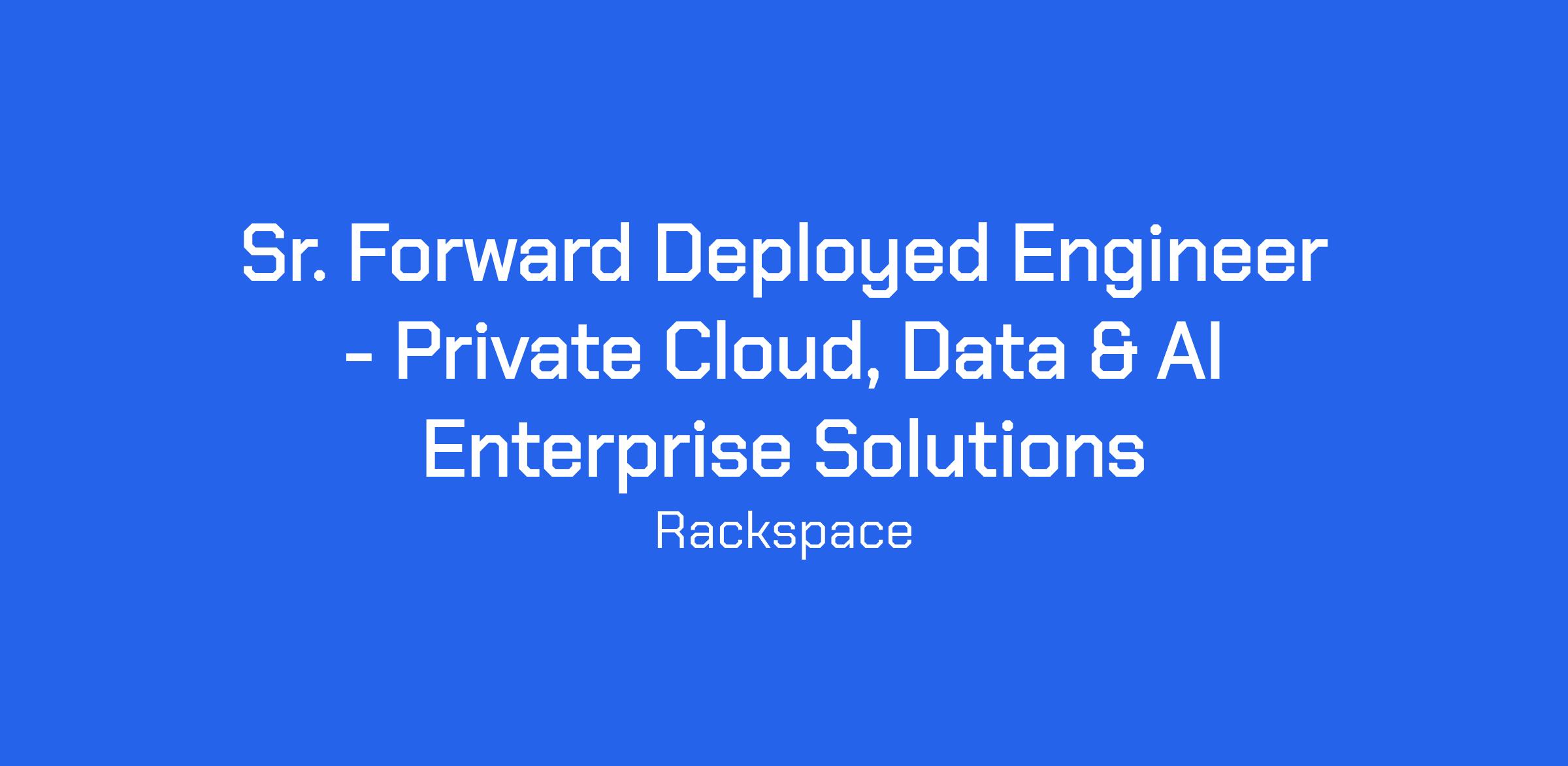 As a Sr. Forward Deployed Engineer (Sr. FDE) at Rackspace Technology, you will be embedded directly with our most strategic enterprise customers to architect, build, and deploy high-impact AI solutions. This role combines deep technical engineering with business acumen, customer empathy, and end-to-end solution ownership. You become the technical bridge between Rackspaceβs AI platform capabilities and the customerβs most pressing business challenges. You will own the full solution lifecycle from problem discovery and rapid prototyping through production deployment and continuous optimization while feeding field insights back to our product and platform engineering teams.