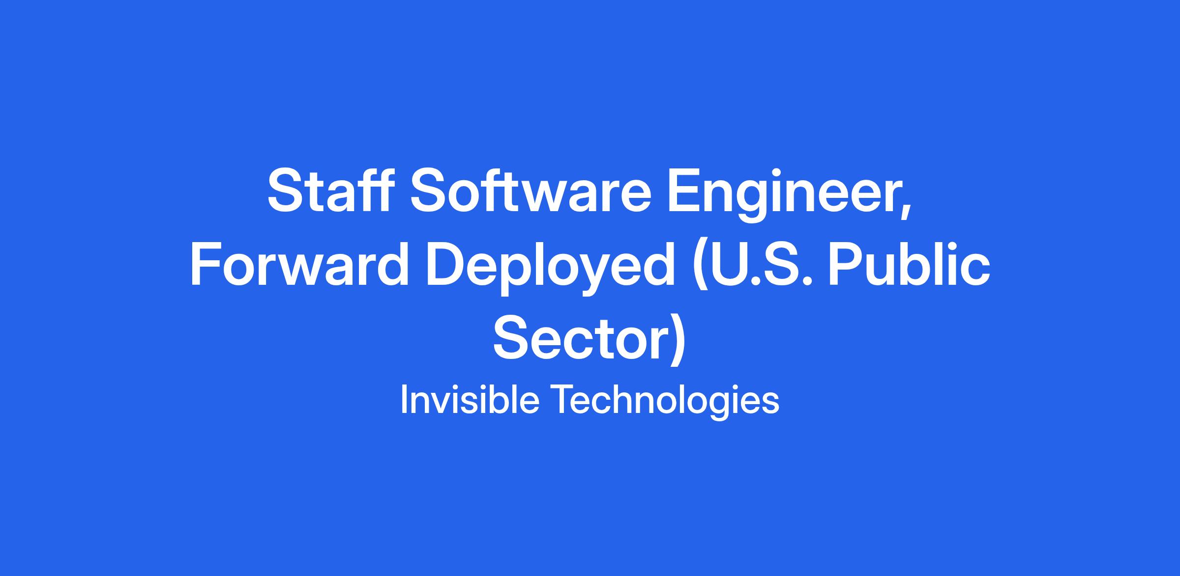 As a Forward Deployed Engineer (FDE) for our U.S. Public Sector team at Invisible, you'll lead high-impact, AI-powered solutions that reshape how our clients operate their most critical workflows. You won’t just build and deploy — you’ll drive the strategy, architecture, and execution of end-to-end systems, working directly with client stakeholders and our internal delivery teams.